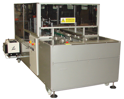 Une cellule photo-électrique détecte le passage de l’étui et donne l’ordre de l’encoller. La fermeture des étuis est réalisée par un générateur de colle à chaud sous pression équipé de tuyaux et pistolets chauffants.